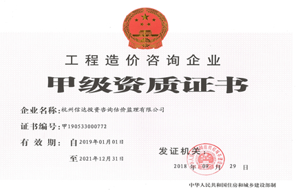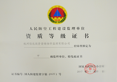 杭州信達投資咨詢估價監(jiān)理有限公司具有的資質等級如下: