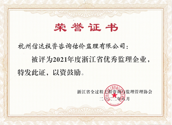 2021年度浙江省優秀監理企業